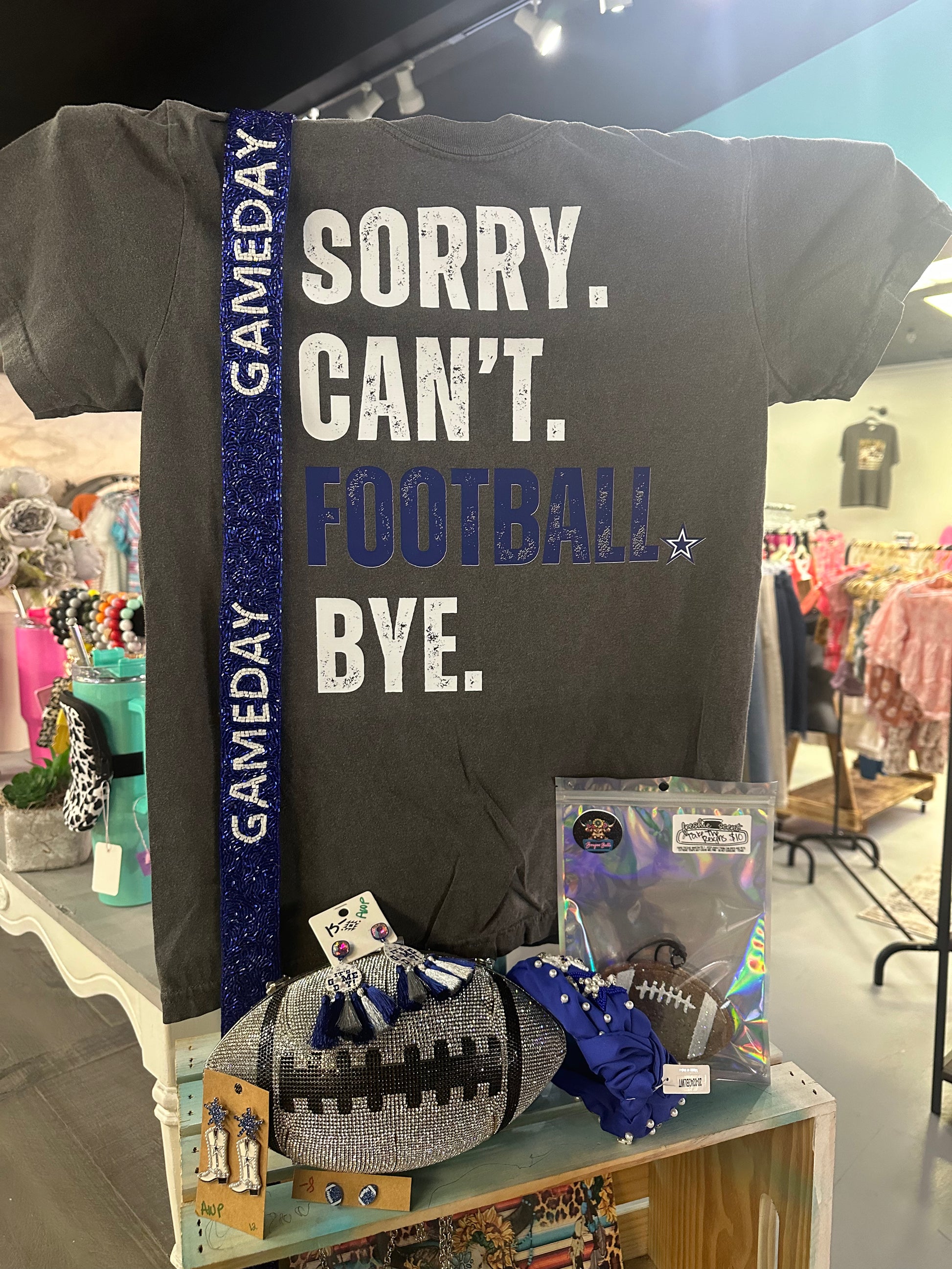 Sorry, Can’t, Football, Bye. On a Pepper(Charcoal Grey) Comfort Colors.